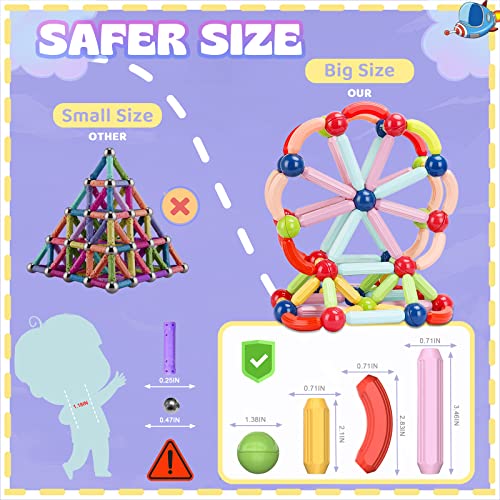 • 【SAFE & DURABLE MAGNET TOYS】MAGDIY Magnetic blocks are made of Non-Toxic & durable ABS plastic, designed with rounded edges, unique surface groove, lager size and vibrantly colored, using the advanced ultrasonic welding technology, providing more powerful magnetism to ensure it’s a perfect sensory toys gifts for boys and girls aged 3+ !